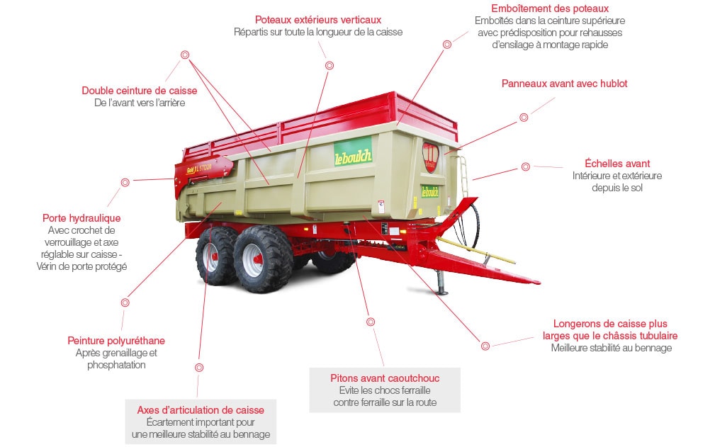 La société française Leboulch fabrique des bennes, épandeurs de fumier, épandeurs de lisier, plateaux, remorques et bétaillères